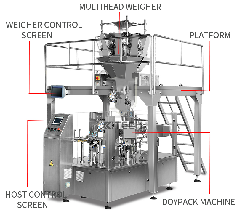 Fully Automatic Doypack Sugar/ Powder / Cookies / Chips / Pet / Frozen Multi-Function Food Premade Bag Packaging Machine